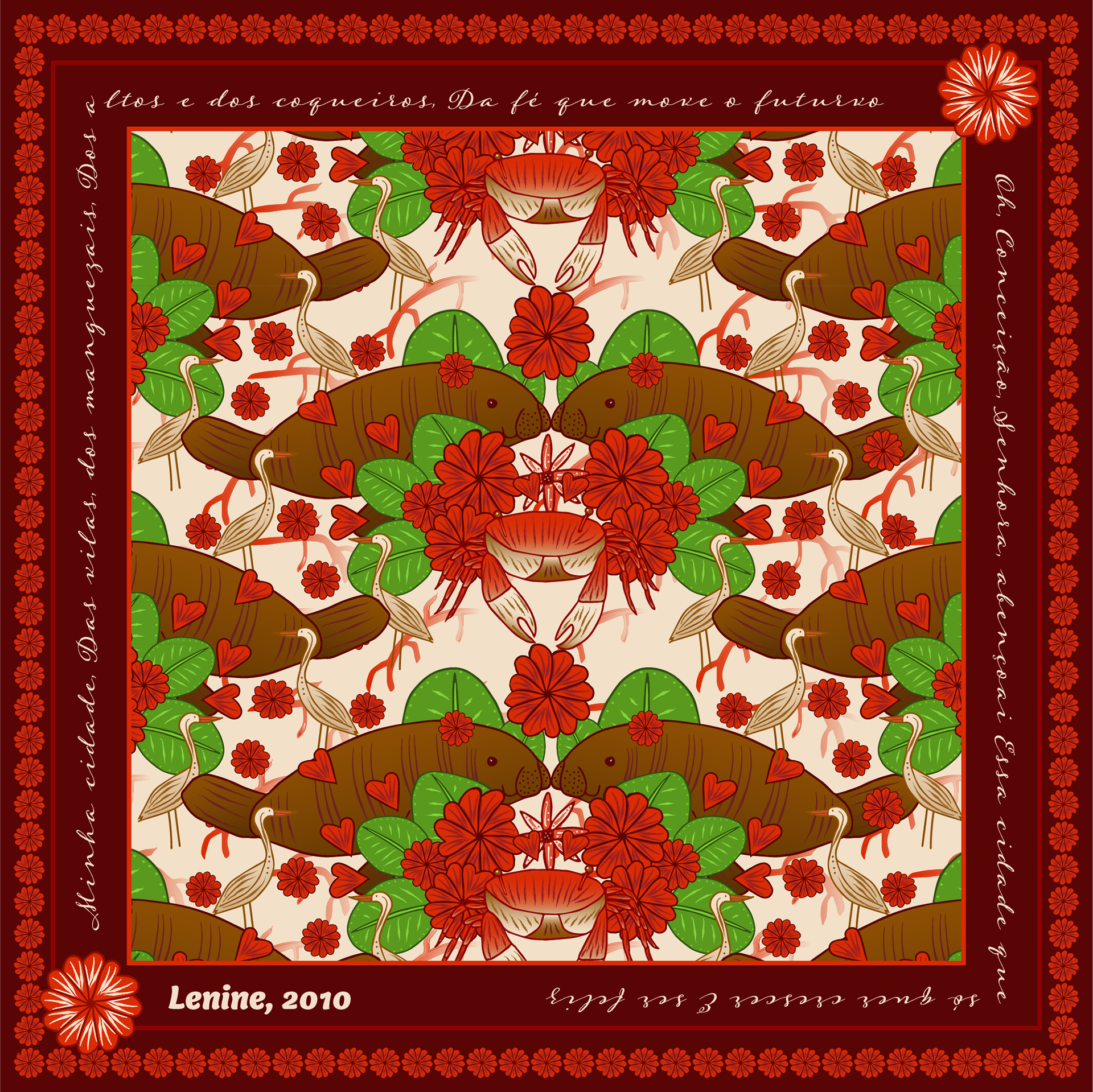Estampas criadas para homenagear o aniversário de Recife, com inspiração na letra de Lenine: